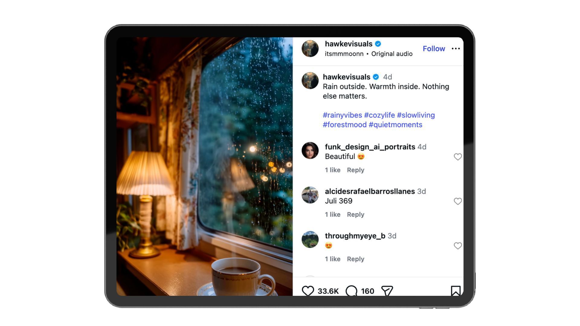 Rain + warm light = instant comfort