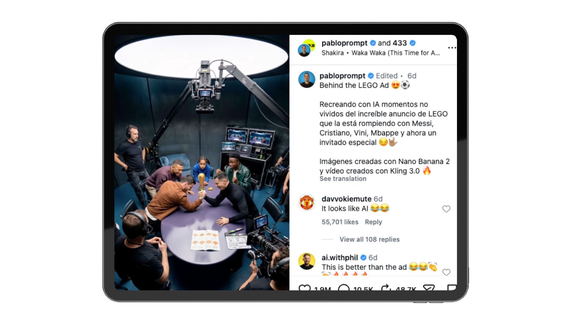 A viral “behind the scenes” of the LEGO World Cup ad showing Messi, Ronaldo, Mbappé, and Vinicius but revealing how it was actually created.