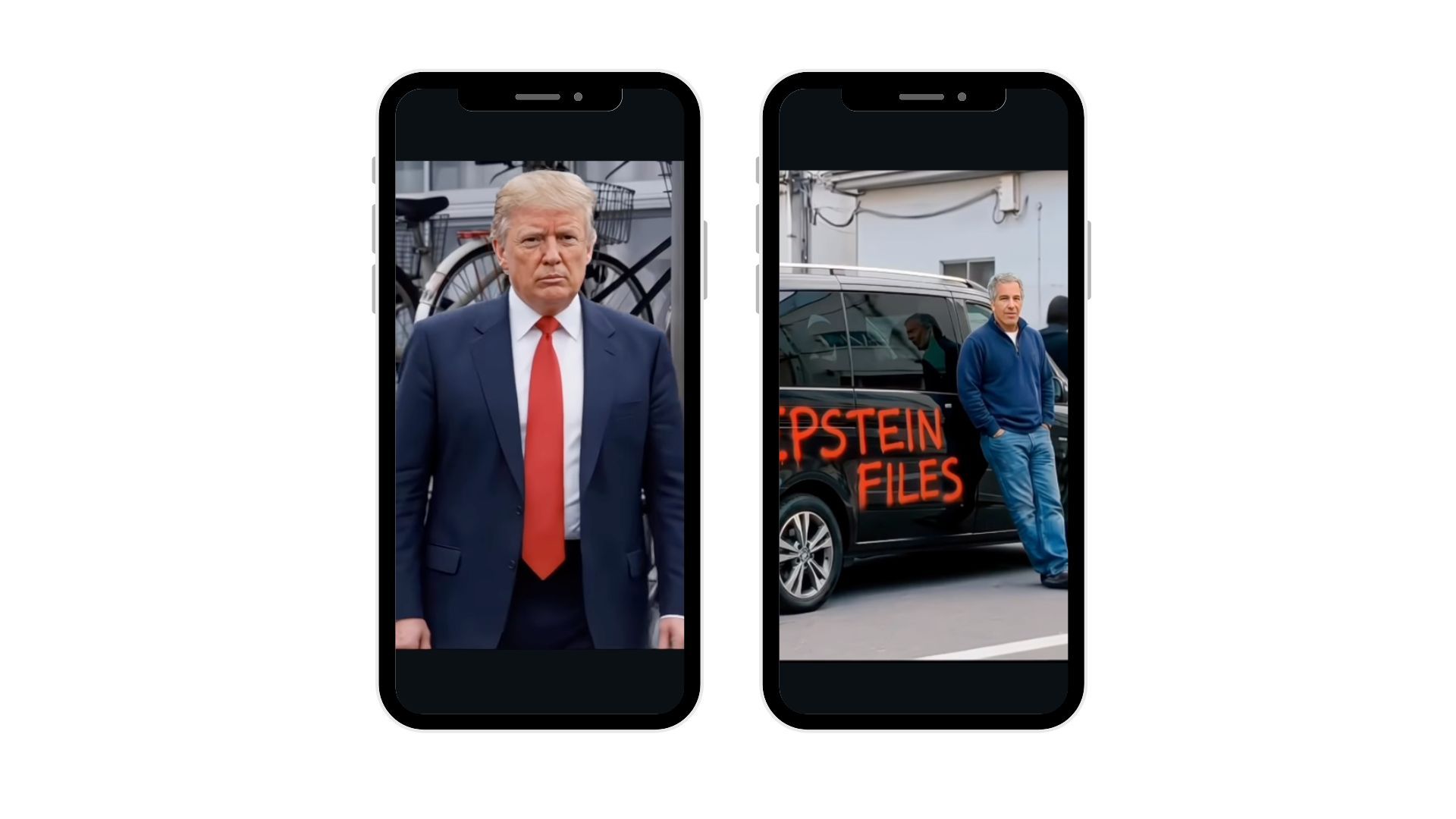 Cinematic Tokyo Drift-style scene. A black van pulls up. “EPSTEIN FILES” spray-painted on the side. Political figures standing around it like it’s a Fast & Furious standoff.