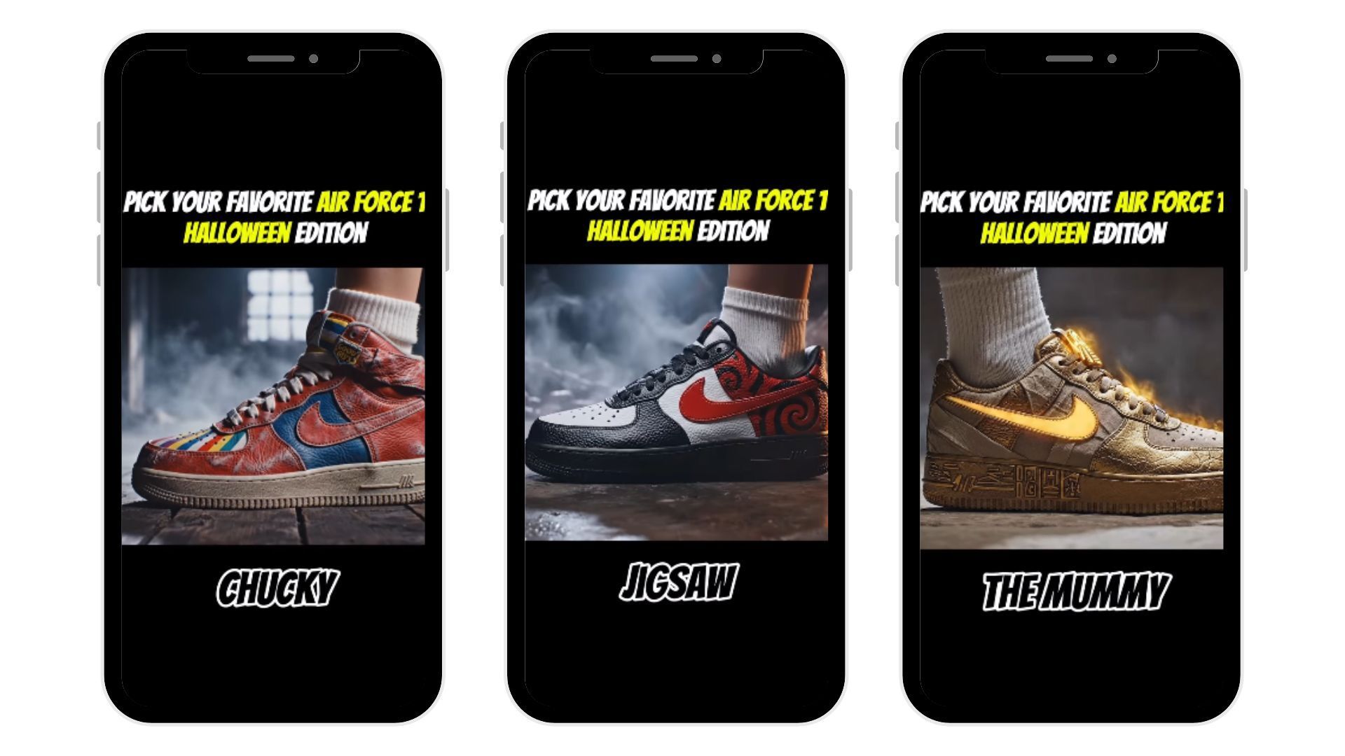 AI-generated Nike Air Force 1s themed after horror movie characters like Chucky, The Mummy, and Jigsaw perfect Halloween drop, and users are voting on their favorites.