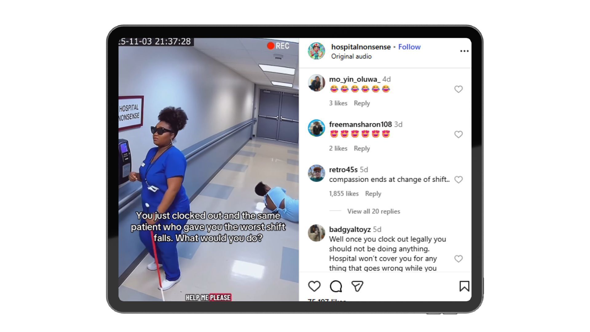 A nurse clocks out, then sees the same patient who gave her the worst shift collapse. Instead of rushing to help, she instantly whips out sunglasses and a cane, pretending she’s blind and didn’t see a thing.