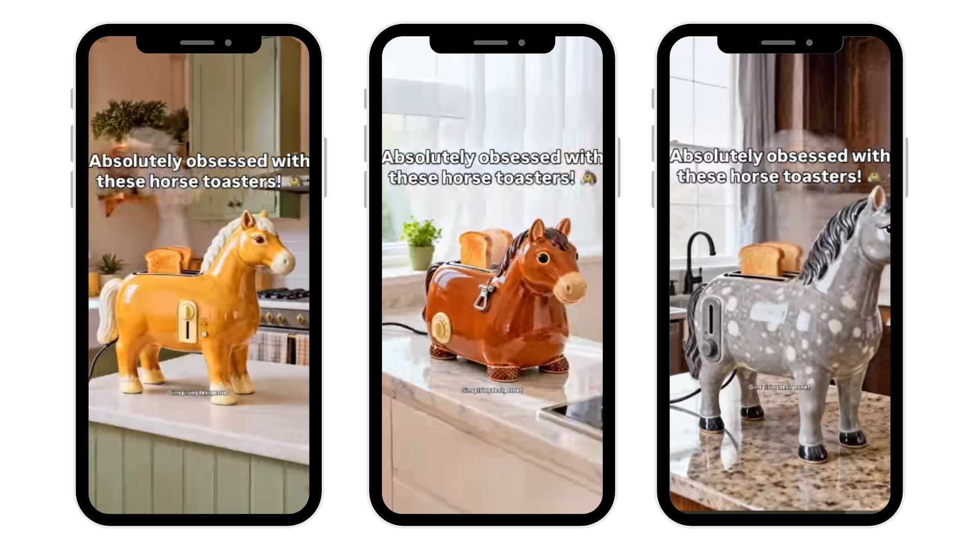 It’s a video montage of AI-generated “horse toasters” in beautiful kitchen settings. That’s it. Just weird enough to go viral.